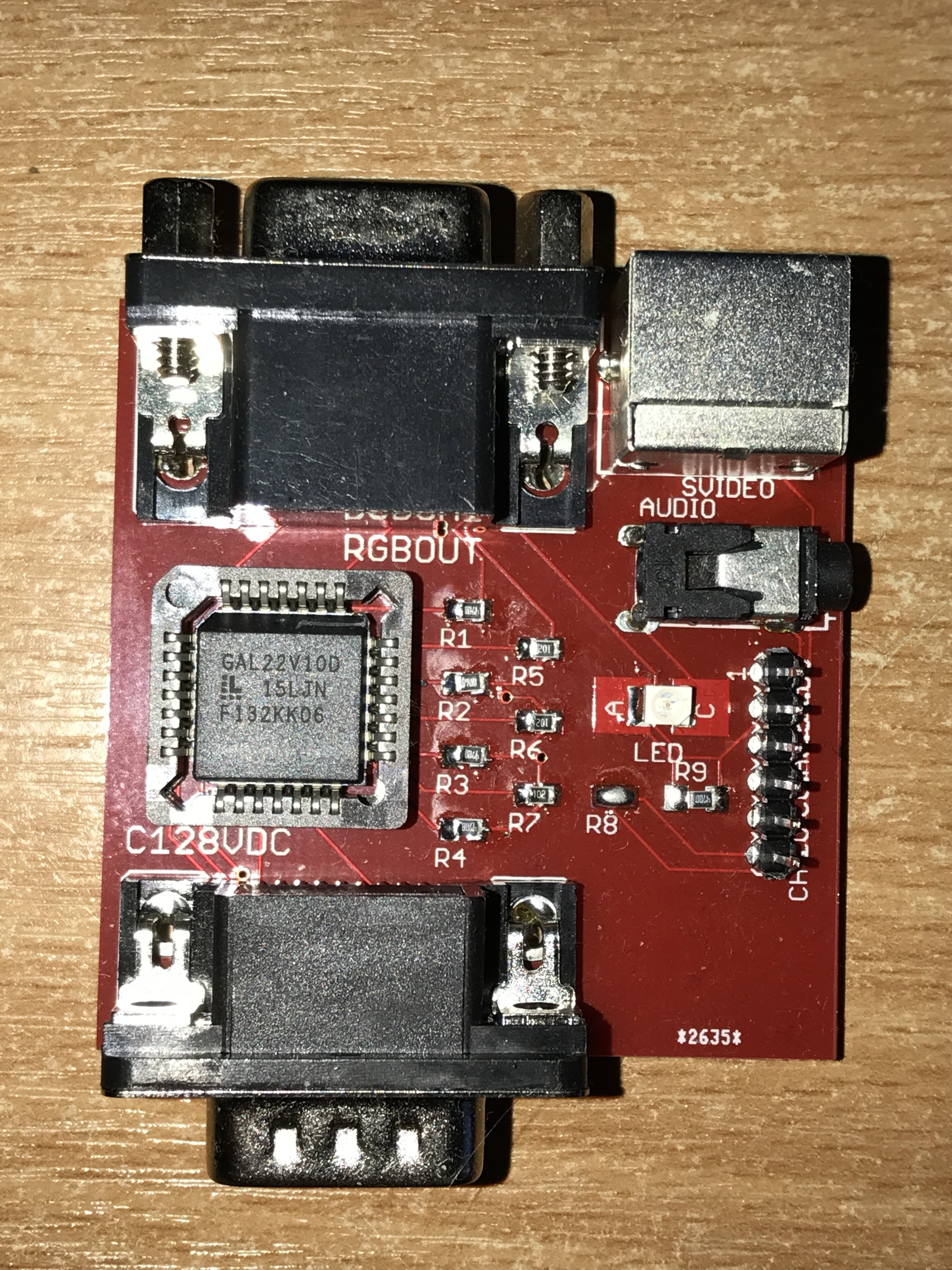 As well as the RGB output there is a pin header on the board for connecting to an S-Video source as well as mono audio and the 5v supply. When used with the Commodore 128 this allows feeding 5v from the 128 to the adapter board as well as hooking up the VIC-IIe’s S-Video output and audio in an easier way using a single Din cable to the AV socket on the back of the machine. The S-Video from the VIC goes to a real S-Video socket and the audio goes to a 3.5mm audio jack. (Cable/plug for DIN is not included, this is the board only).